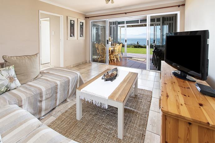 Unwind in the open-plan lounge with DStv and free Wi-Fi, or enjoy meals in the enclosed dining area that opens up to a sunny patio. The outdoor space is perfect for braais, with plenty of room for children to play on the surrounding lawn while you take in the ocean views.