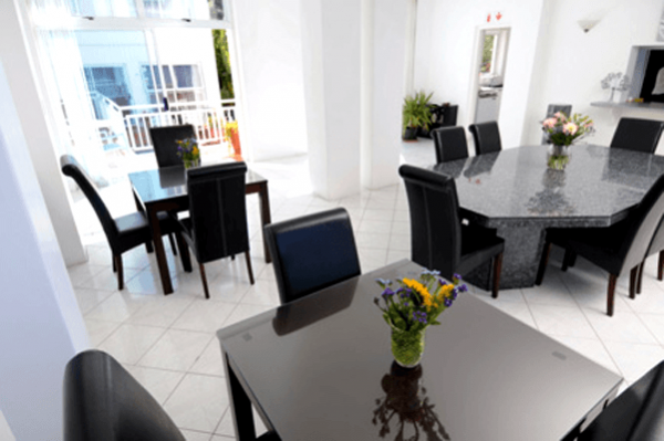 Our guest house features six elegantly appointed en-suite bedrooms designed for ultimate comfort and relaxation. Enjoy panoramic views of the Indian Ocean from spacious lounges, including a large upper lounge that opens to a balcony with spectacular sea vistas. A library and reading room overlooking the serene swimming pool add to the tranquil ambiance.