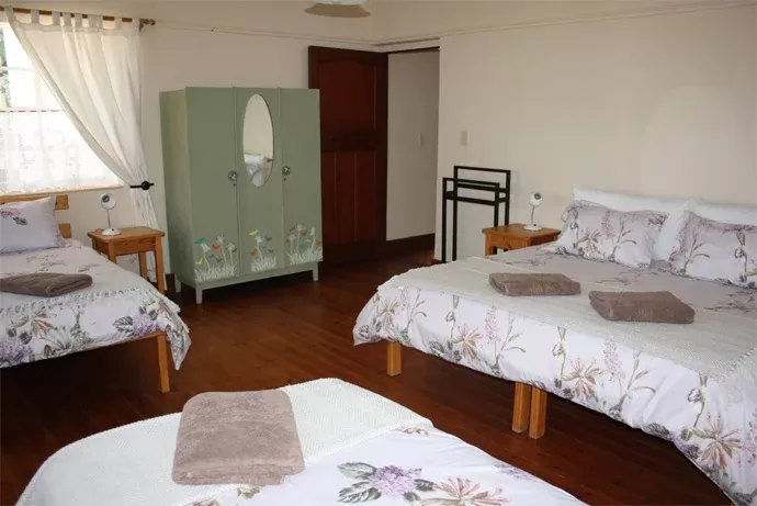Accommodating up to 13 guests, this farmhouse is an excellent choice for group vacations or family getaways. The house offers four cozy bedrooms, two bathrooms (including one en suite), and an inviting sunroom. The open-plan living area, complete with a fireplace, creates a warm atmosphere. Guests can prepare meals in the fully-equipped kitchen with a breakfast counter, while the indoor braai area ensures a pleasant cooking experience. Please note, the absence of cell phone reception and TV offers a peaceful break from the digital world.
