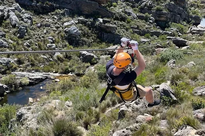 Located in the breathtaking Ceres Valley, our zipline experience is just an hour and a half’s drive from Cape Town. Surrounded by stunning rock formations and a winding river, it’s the perfect getaway to escape the city and immerse yourself in nature while enjoying a high-speed adventure.