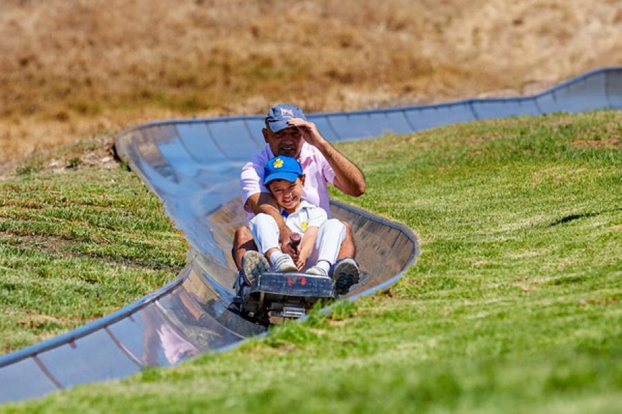 It’s fun for kids and adults, and it’s completely safe and the combination of speed and skill makes it a thrilling challenge for even the most die-hard speed freak. Starting at the foot Durbanville’s slopes, you settle into your toboggan and set off as the cables in the tracks haul you to the start of the course (a relief for anyone thinking they’d have to climb the hill every time!).