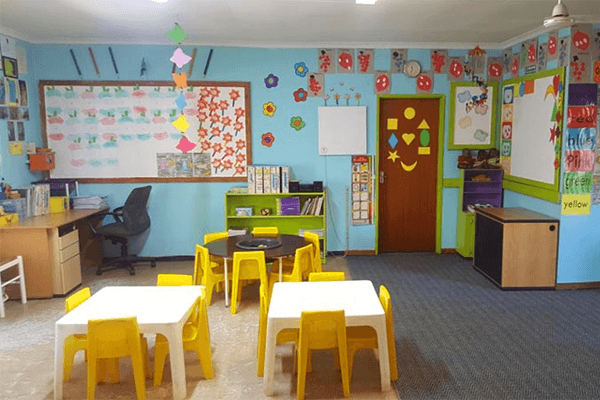 We teach all children within the kindergarten in English and we have made it a policy that in every class there is an assistant for every teacher.