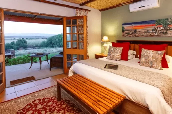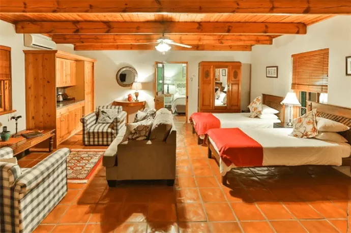 Discover the allure of country living with a touch of luxury at De Denne. Situated on a working ostrich and Alfalfa farm, our guesthouse boasts sweeping views, stunning sunsets, and warm hospitality. It's more than just a place to stay; it's an escape from the ordinary.