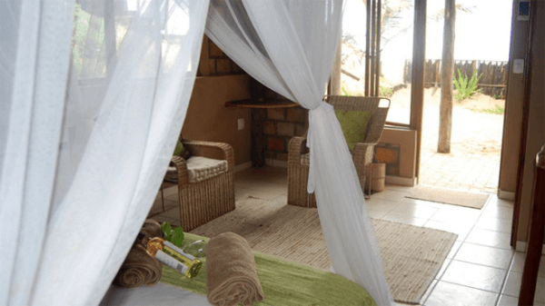 The bay also ensures a safe platform from which to launch boats both at high and low tides.The resort consists of several houses: 2sleeper apartment and chalets for 6, 8, 10 or 15 people.All chalets are overlooking the Indian Ocean and are fully equipped with linen, mosquito nets, cutlery & utensils, TV with DVD player, electric fridge and deep freezers, gas stoves with electric ovens and electric geysers. On the wooden terrace is a braai area with a splash pool that gives you an opportunity to cool off on hot days. The chalets are serviced daily and the resort is security patrolled 24 hours per day.