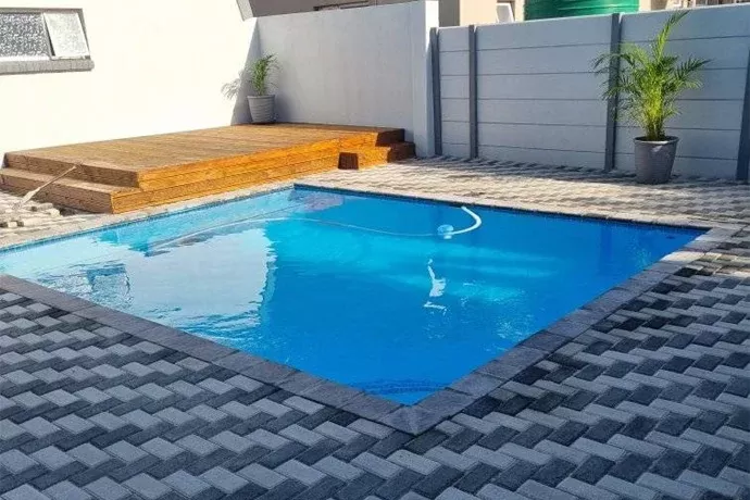 A pool area should be as safe as it is attractive. We offer a variety of non-slip paving and tiling options in different colours and finishes, ensuring your pool surrounds are both practical and visually appealing.