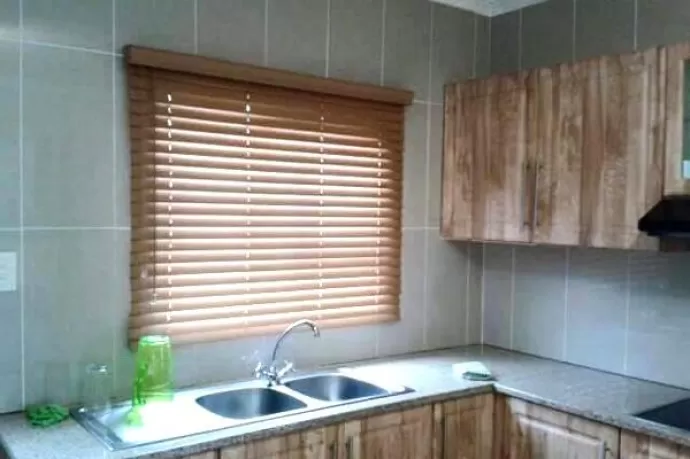 Infuse warmth and sophistication with our wooden blinds, featuring horizontal slats linked together through a convenient pulley system.