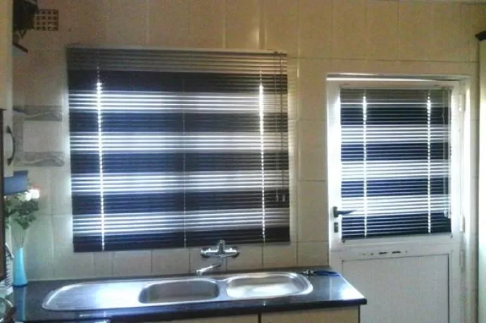 Achieve a classic look with our Venetian blinds, showcasing basic horizontal slats available in metal, vinyl, PVC, or plastic.