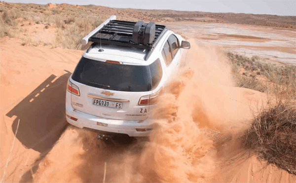 Kalahari Goerapan word beskryf as 'n luukse veldkamp met chalets en kampeerplek, 4x4 roetes en vele spanbou aktiwiteite.