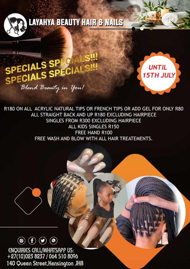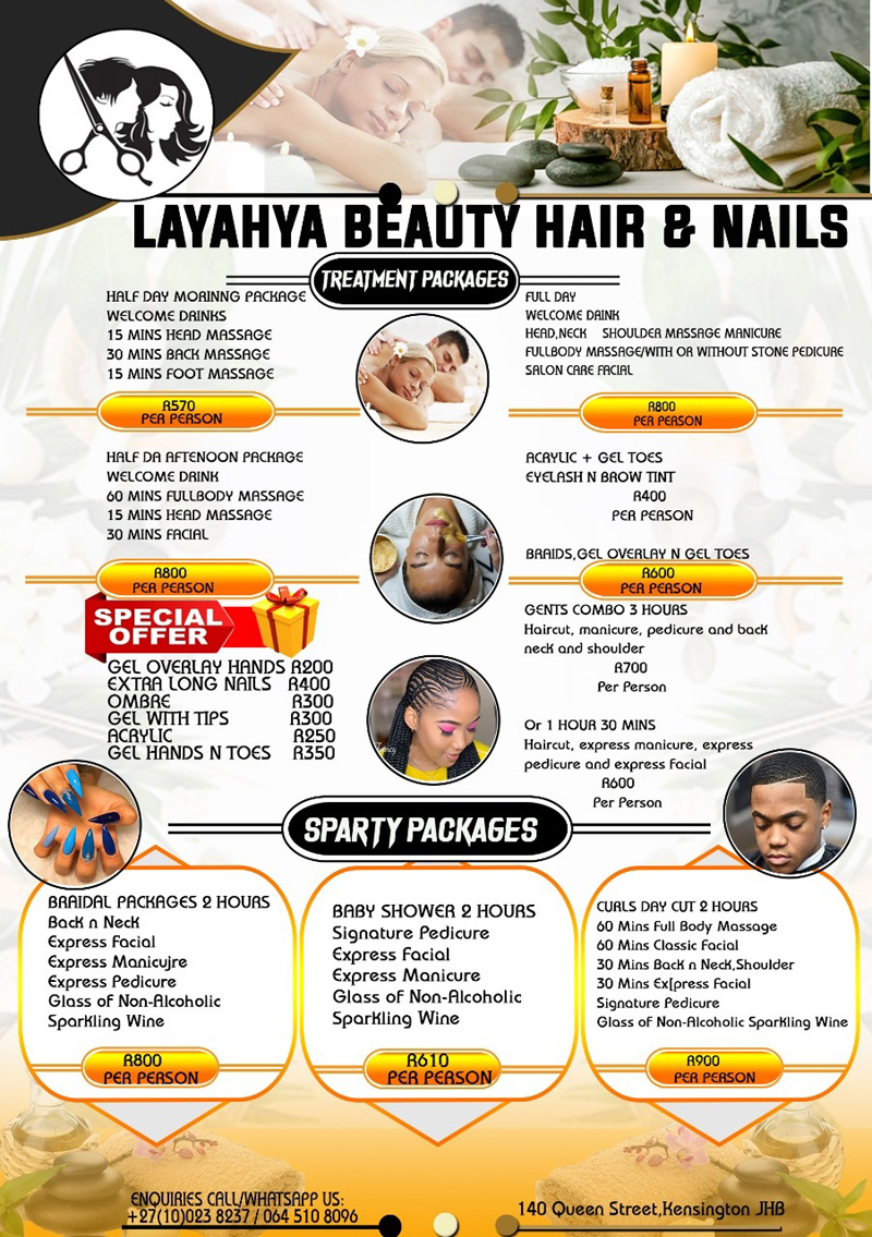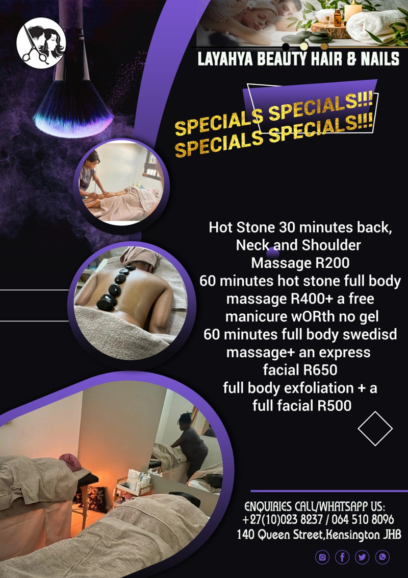 Layahya Spa is your ultimate destination for tranquility and revitalization in Kensington, Johannesburg. We are proud to be one of the leading establishments for massage therapy, hair styling, nail treatments, and skin care.