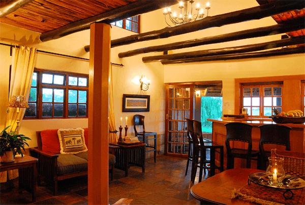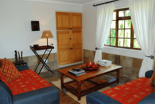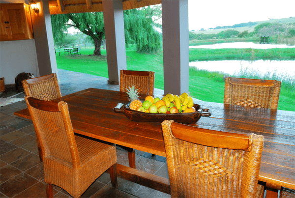 It offers four stylish bedrooms, three en-suite and one with a private bathroom, a lounge equipped with satellite TV and music system, a modern, fully equipped kitchen and a spacious "stoep" (veranda) with braai facilities overlooking the dam which is well stocked with bass. The lodge provides guests with lovely views across the plain where game and bird life abound.