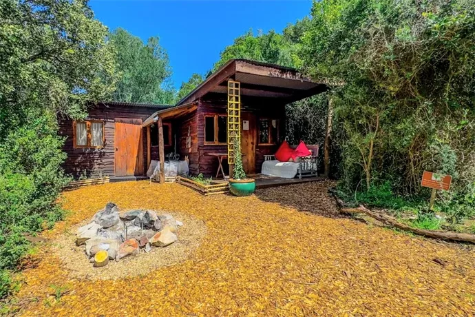 Named for the nearby wild olive tree that has stood for centuries, the Old Olive Cabin blends rustic charm with natural comfort. A wood-fired hot tub beneath the trees adds a magical touch to this serene forest escape.