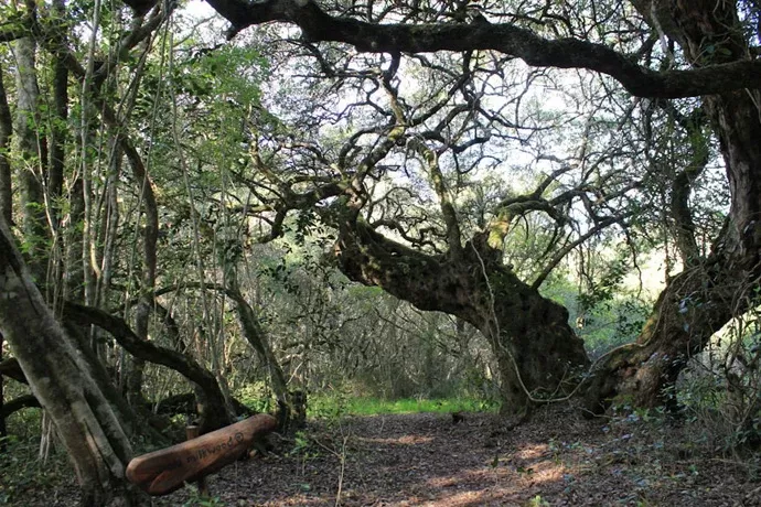 Tucked away on the foothills of the Baviaanspoort Hills in the Western Cape, Platbos Forest is a hidden gem and one of South Africa’s last pockets of ancient indigenous woodland. This mystical forest, where some trees are believed to be over a thousand years old, offers a peaceful retreat between the seaside towns of Hermanus and Gansbaai. Just a short distance away, Walker Bay provides a spectacular backdrop where Southern Right whales gather each spring to calve in its sheltered waters.