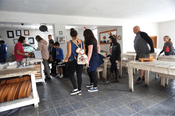 From the parking lot you enter the premises through our restaurant. There we have a gigantic wood burning pizza oven where we make the most delectable pizzas south of Italy! Cold drinks, slush puppies, gelato, hot drinks and snacks are all available here.