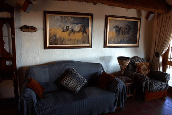 The living area opens out to a covered balcony with outdoor dining furniture and built-in braai facilities. The balcony has stunning views over the nature reserve. Garage parking is available at the lodge.