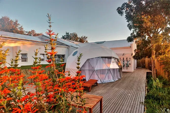 Located at the foot of the Franschhoek Pass, theLAB Luxury Backpackers is anything but typical. Surrounded by lush greenery and dramatic mountains, this accommodation offers a relaxed and upbeat atmosphere in the heart of the village.