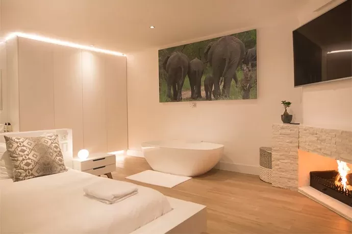 theLAB Franschhoek caters to every guest, with two rooms thoughtfully designed to be wheelchair accessible. Some rooms come with private, enclosed bathrooms, while others feature a chic open-plan layout with subtle glass partitioning between bedroom and bathroom areas.