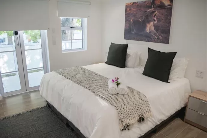 Each villa includes two bedrooms with en-suite bathrooms, air-conditioning, a full kitchen, dining space, and lounge. Outside, guests can enjoy a private patio with braai facilities and outdoor seating. Free Wi-Fi and secure parking are included, with daily housekeeping and laundry available on request. Breakfast can be arranged at an additional cost.