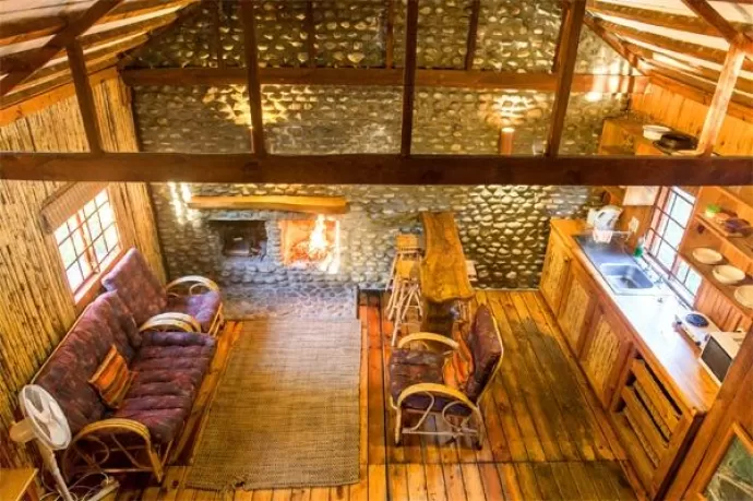 Immerse yourself in the charm of these river cabins, accommodating four guests each. The open-plan design, complemented by modern amenities, includes a fireplace and outdoor braai facilities.